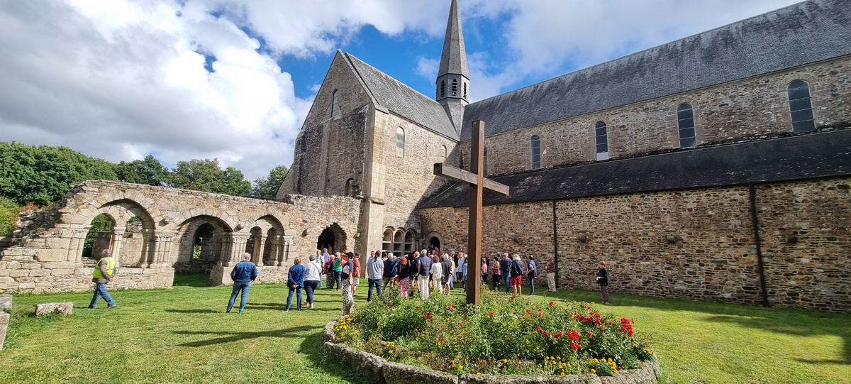 Yves Robin nous a organisé une très belle journée à destination de Langourla. Après une pause café à Tréverien nous rejoignons le théâtre de verdure de Langourla pour y partager le pique-nique. Puis nous prenons la route vers l Abbaye de Boquen pour une très intéressante visite.